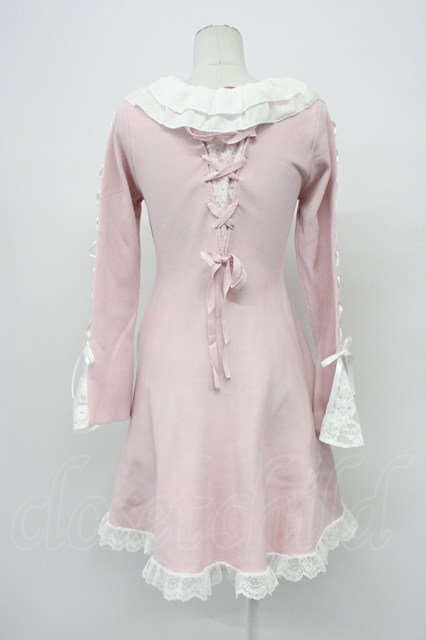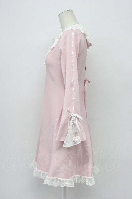 mellfy memory / Precious memories flare ニットワンピース ピンクX白 T-26-04-03-003-0-OP-SA-ZT