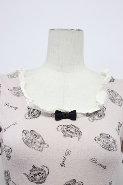 Ank Rouge / ティーカップ柄半袖ワンピース M ピンク T-26-04-03-007-CA-OP-SA-ZT