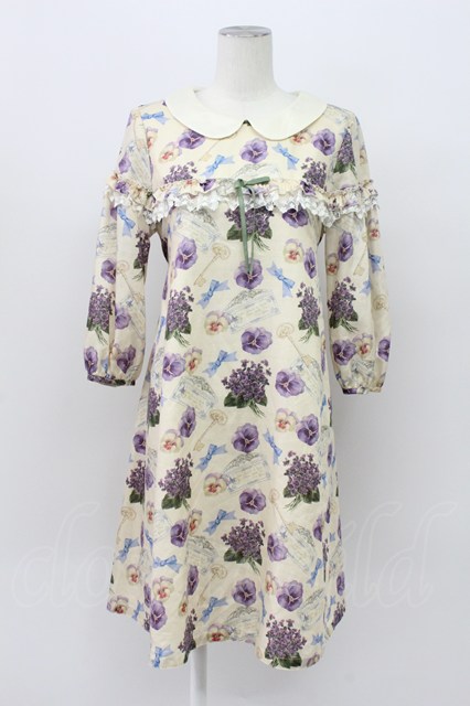 Leur Getter / Flower Letter袖付ワンピース アイボリー T-26-04-03-014-LU-OP-SA-ZT [2100060000040969-T-26-04-03-014-LU-OP-SA-ZT]