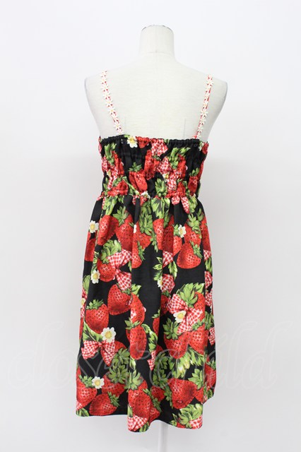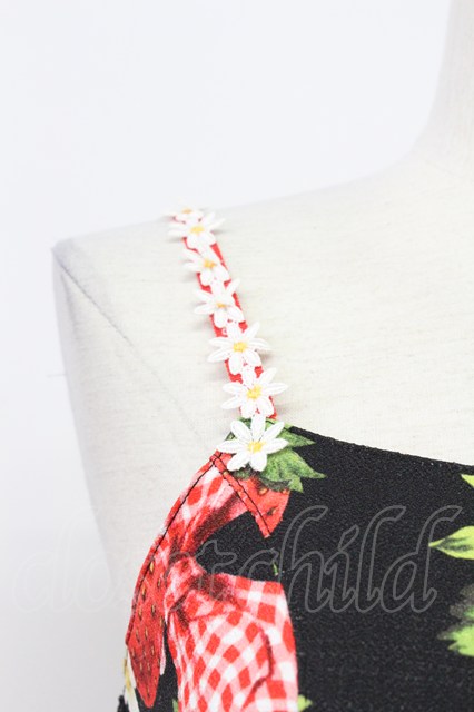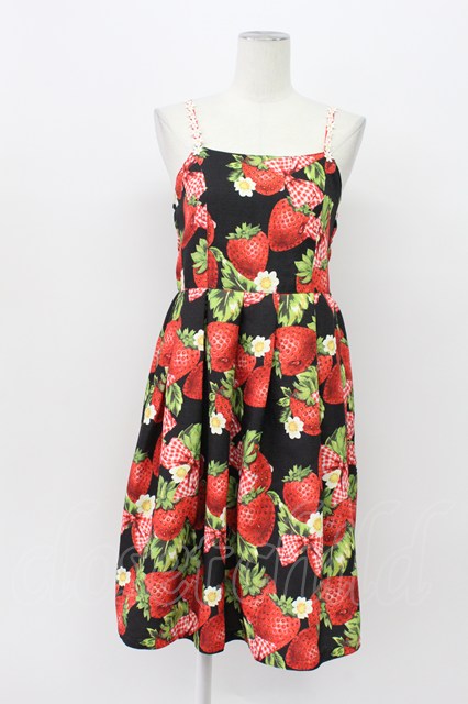 Emily Temple cute / Contrast ストロベリーノースリーブワンピース 黒X赤 T-26-04-03-024-ET-OP-SA-ZT