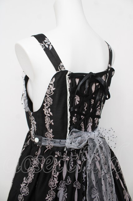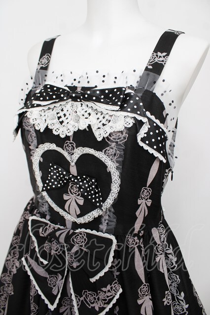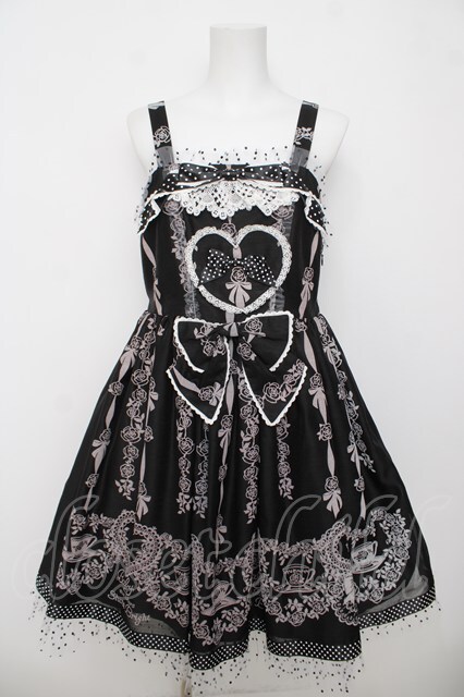 BABY, THE STARS SHINE BRIGHT / Sugar Rose Tea Timeプリントハートジャンパースカート 黒 Y-26-04-07-046-BA-OP-SZ-ZY