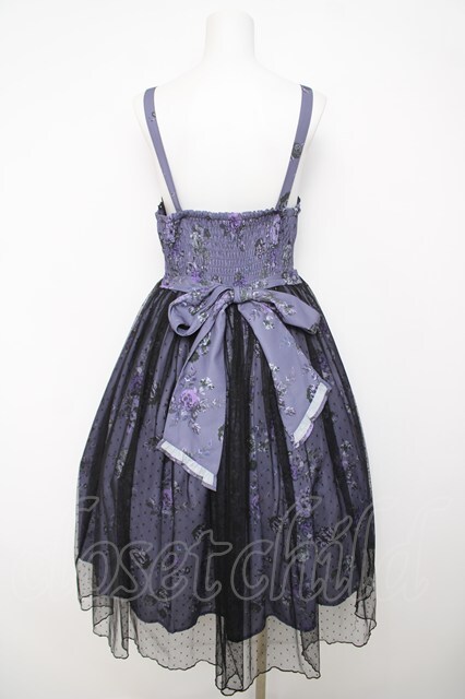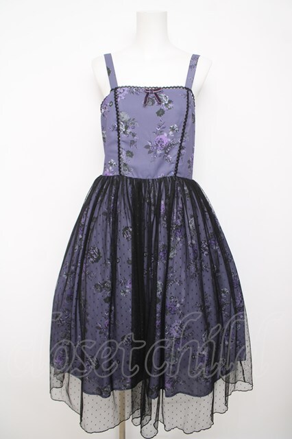 axes femme kawaii / クラシックブーケ柄ジャンスカ M パープル Y-26-04-07-059-AX-OP-SZ-ZY