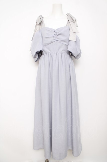 earth music&ecology / リボンショルダーオフショルワンピース F グレイッシュブルー Y-26-04-07-063-LO-OP-SZ-ZY