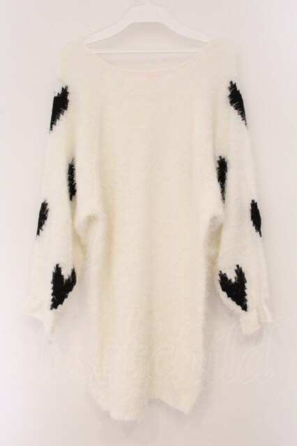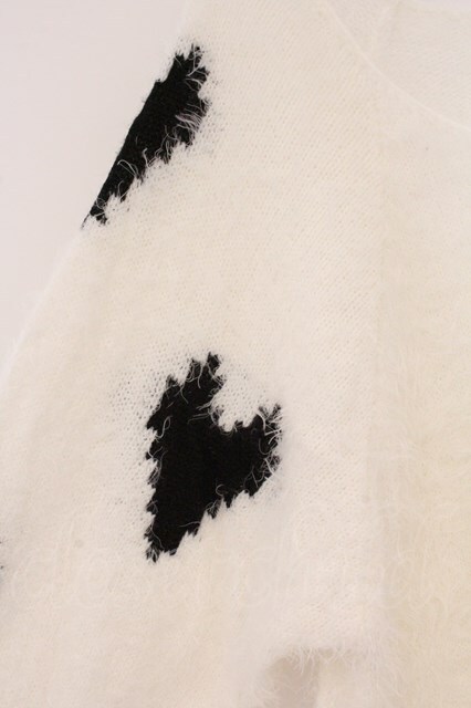 Swankiss / ハート配色シャギーニット F シロ O-26-04-02-077-CA-TO-OW-OS