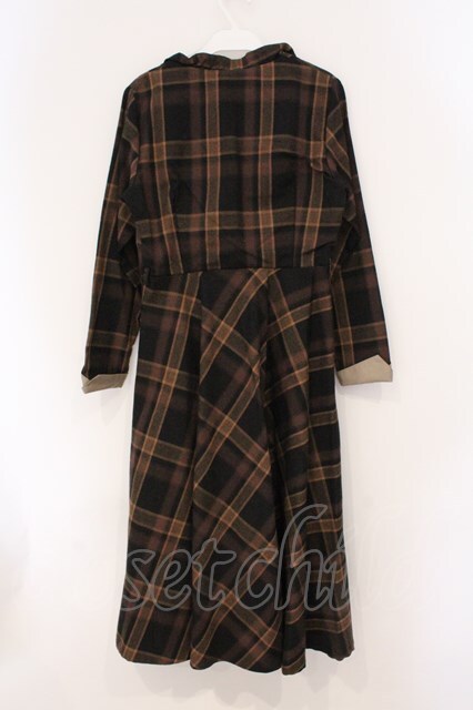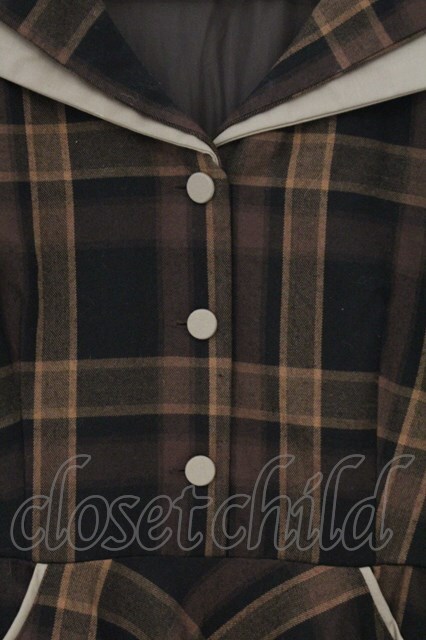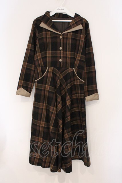 an another angelus / ダブルオープンカラーチェックワンピース ブラウン O-26-04-02-014-CA-OP-IG-OS