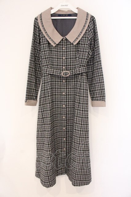 an another angelus / スモーキークレリックツイードチェックワンピース グレー O-26-04-02-028-CA-OP-IG-OS