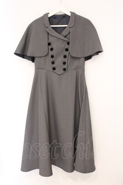 an another angelus / ケープ付きダブル釦ジャンパースカート クロ×グレー O-26-04-02-009-CA-OP-IG-OS