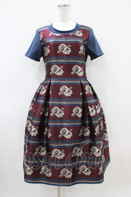 Jane Marple / ローズボーダージャガードワンピース ボルドー×ネイビー H-26-04-03-035-JM-OP-KB-ZH [2100030000078186-H-26-04-03-035-JM-OP-KB-ZH]