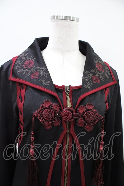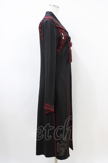 Ozz oneste / レイヤード風ロングカーディガン 黒×赤 H-26-04-03-015-OO-TO-KB-ZH