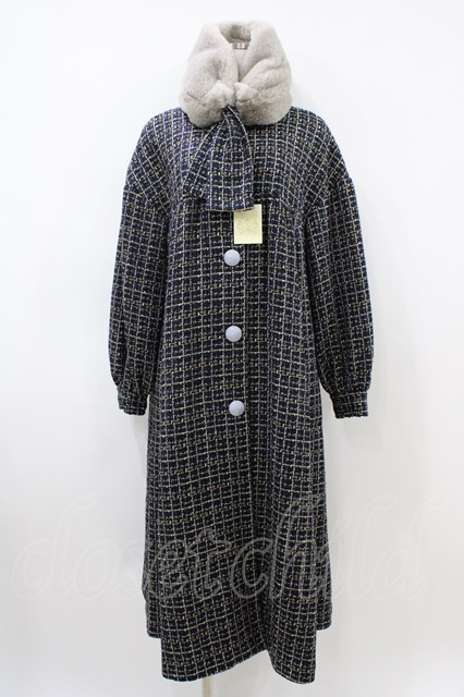 Maison de minette / Glitter tweed coat&fur tippet navy H-26-04-03-018-LO-CO-KB-ZH [2100030000090851-H-26-04-03-018-LO-CO-KB-ZH]