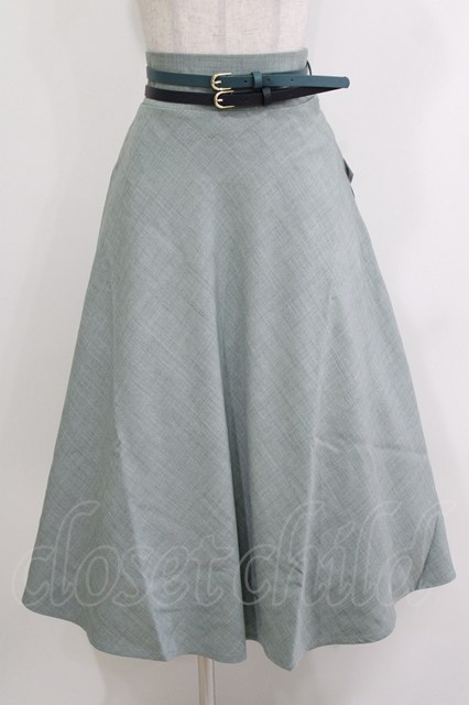 an another angelus / ダブルベルトサマーツイードフレアースカート Free BLUE GREEN H-26-04-08-020-CA-SK-NS-ZH