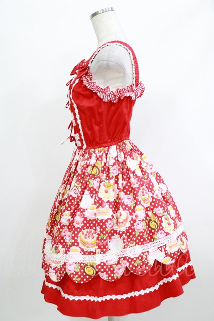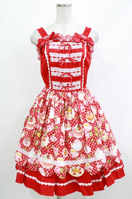CHOCOCHIP COOKIE / スウィーツ柄ジャンパースカート Free レッド H-26-04-08-001-LO-OP-NS-ZH [2100030000090933-H-26-04-08-001-LO-OP-NS-ZH]