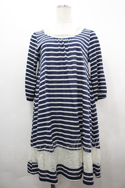 axes femme / ボーダーレースチュニック ネイビーX白 I-26-04-01-099-AX-OP-SA-ZI [2100060000053741-I-26-04-01-099-AX-OP-SA-ZI]