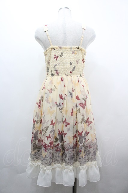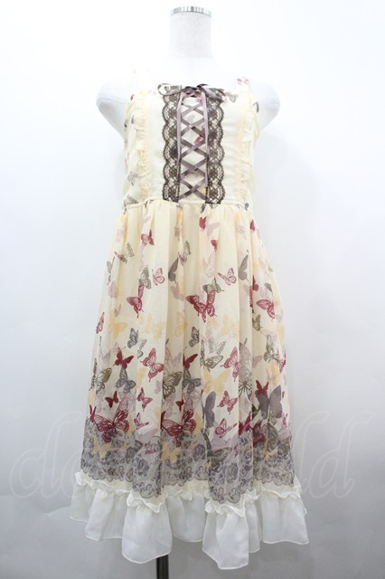 axes femme / 蝶柄レースアップチュニックワンピース アイボリー I-26-04-01-092-AX-OP-SA-ZI