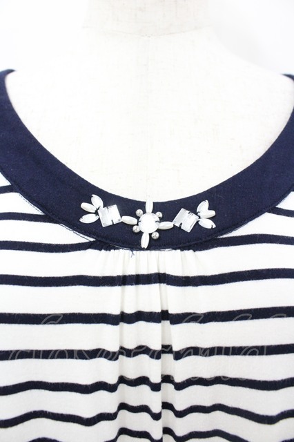 axes femme / 胸元ビジューストライプカットワンピース 黒X白 I-26-04-01-100-AX-OP-SA-ZI [2100060000053746-I-26-04-01-100-AX-OP-SA-ZI]