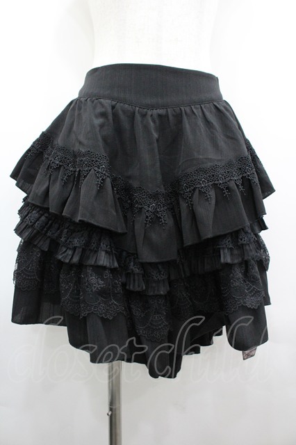 Lilizi / レースフリルスカート S 黒 I-26-04-01-118-LO-SK-SA-ZI