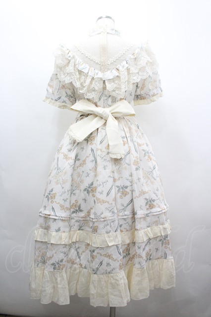 With Puji / フラワーリボンチェリー半袖ワンピース M アイボリー I-26-04-01-063-EL-OP-SA-ZI