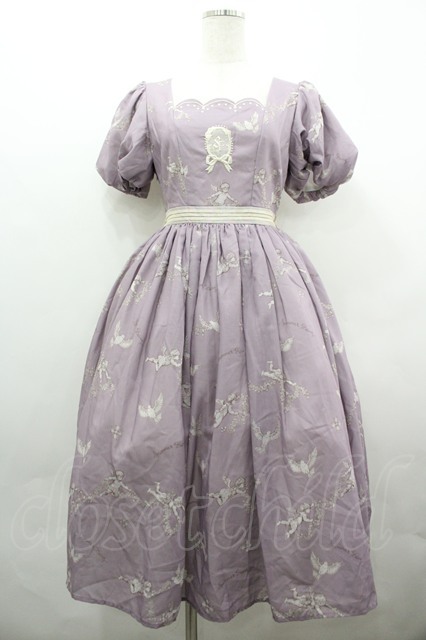 仲夏物語 / 天使柄半袖ワンピース ラベンダー I-26-04-01-064-EL-OP-SA-ZI