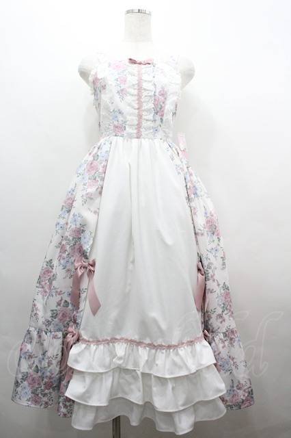 Chalmiere / クラシカルローズ柄ジャンパースカート M 生成り I-26-04-01-084-0-OP-SA-ZI