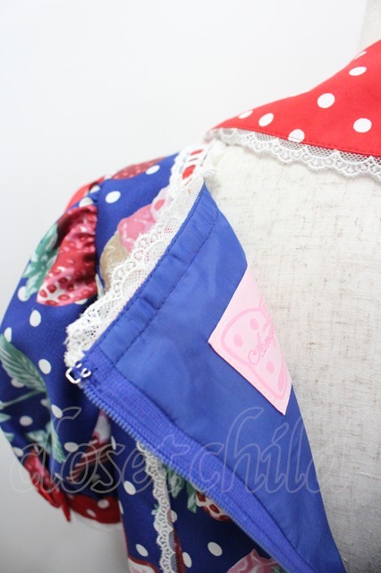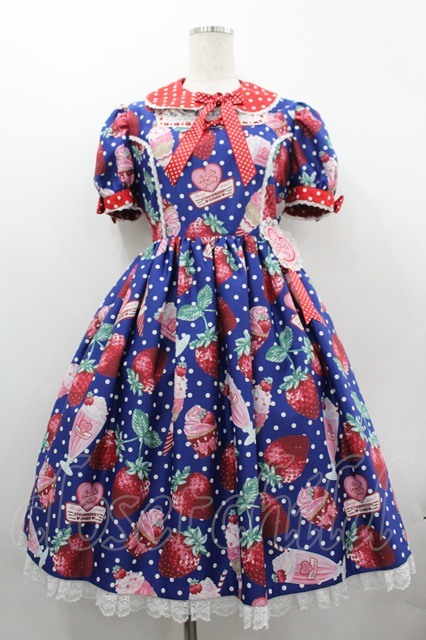 Angelic Pretty / Fresh Strawberry Dinerワンピース 青 I-26-04-01-045-AP-OP-SA-ZI [2100060000053820-I-26-04-01-045-AP-OP-SA-ZI]