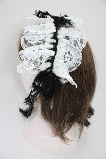 MARBLE / フリンジリボンレースヘッドドレス 白x黒 T-26-04-04-040-GO-AC-SA-ZT