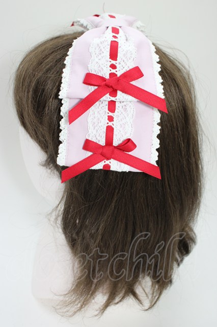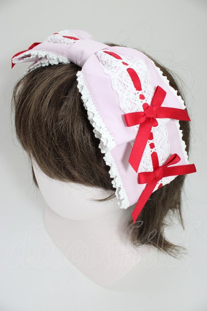 Chalmiere / 梯子レースリボン型ヘッドドレス ピンクX赤 T-26-04-04-042-0-AC-SA-ZT
