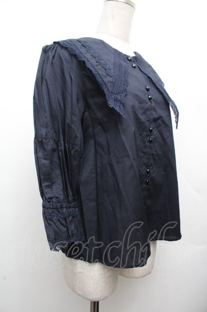 Perla nell' ostrica / コットンパフブラウス M 紺 S-26-04-02-025-EL-BL-HR-ZS