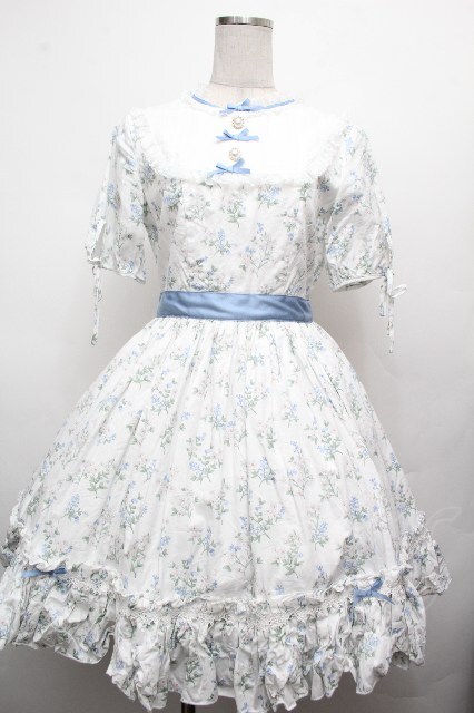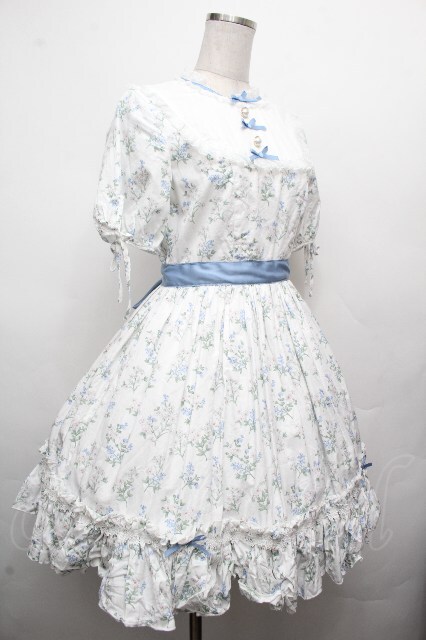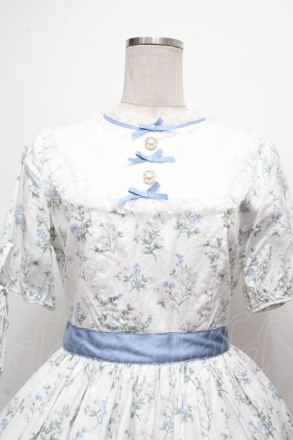 Bunny魔法森林(海外ロリータブランド) / ヨーク切替花柄ワンピース 白xサックス S-26-04-02-033-LO-OP-HR-ZS