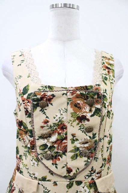 axes femme / 薔薇柄ジャンパースカート M 生成り H-26-04-06-1034-AX-OP-NS-ZH