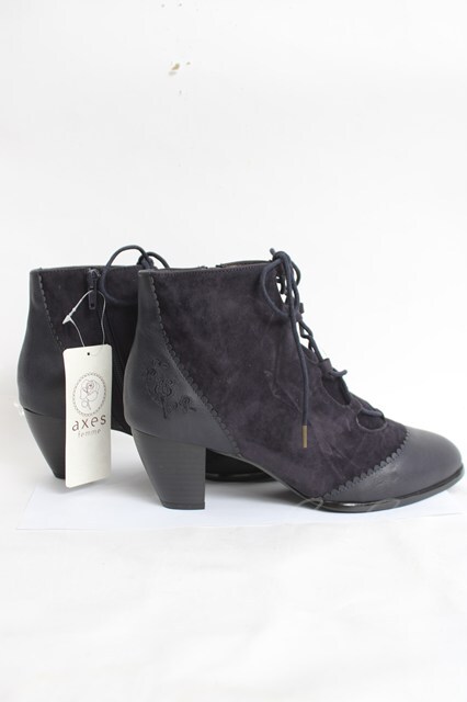 axes femme / レースアップスエーッドブーツ L 紺 Y-26-04-09-013-AX-SH-SZ-ZY