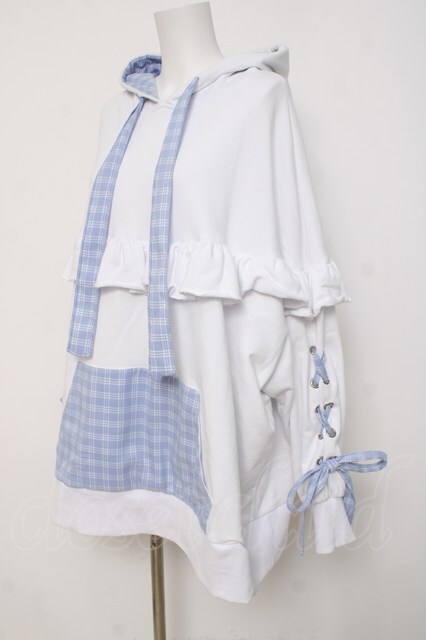 ililil / ミズイロチェックフリルプルパーカー シロ Y-26-04-09-025-PU-TO-SZ-ZY