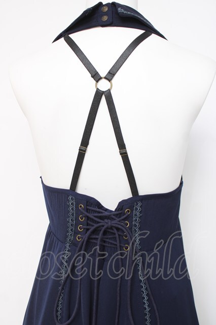 Ozz oneste / 薔薇刺繍ロングベストワンピース 紺 Y-26-04-09-032-OO-OP-SZ-ZY