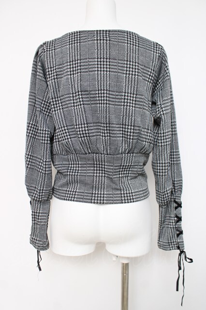 axes femme POETIQUE / レースアップカフストップス グレー Y-26-04-09-067-AX-TO-AS-ZY