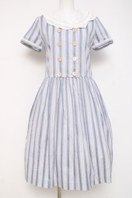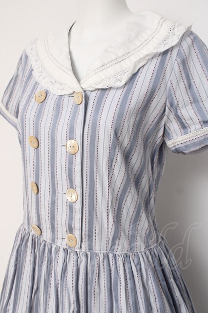 Jane Marple / Wボタンストライプセーラー襟ワンピース M サックス Y-26-04-09-111-JM-OP-SZ-ZY
