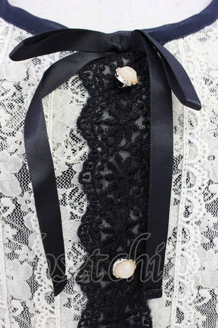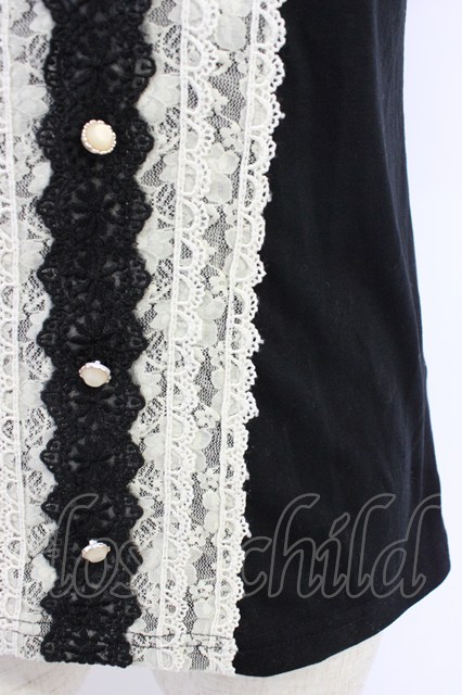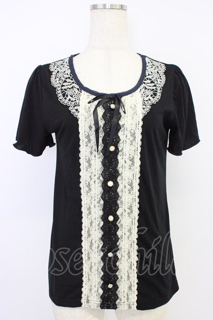 axes femme / 刺繍&レース半袖プルオーバー M ブラック T-26-04-10-012-AX-TO-SA-ZT
