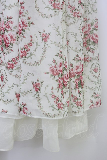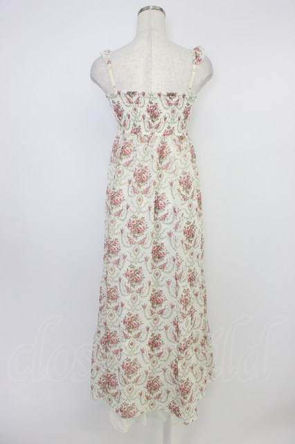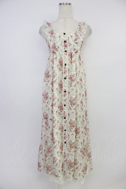 axes femme / 釦開き総バラ柄ロングワンピース M アイボリー T-26-04-10-019-AX-OP-SA-ZT