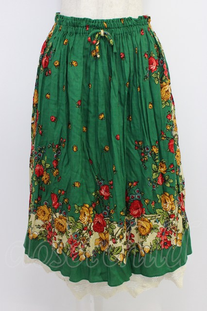 Jane Marple / フラワーラインスカート グリーン T-26-04-10-033-JM-SK-SA-ZT