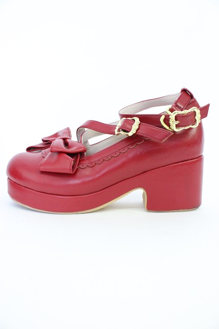 Amavel / ファーぽんリボン付クロスパンプス エンジ T-26-04-10-042-CA-SH-SA-ZT