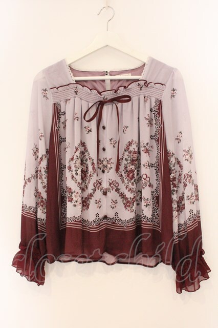 axes femme / ブーケパネル柄プルオーバー M ワイン×ピンク O-26-04-04-023-AX-TO-IG-OS