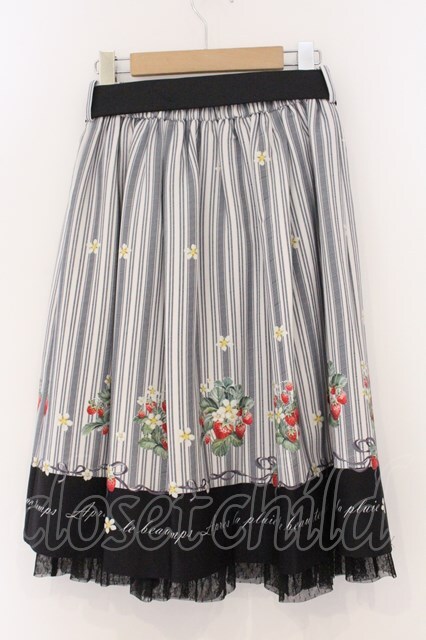 axes femme POETIQUE / ストロベリーストライプスカート M クロ O-26-04-04-024-AX-SK-IG-OS