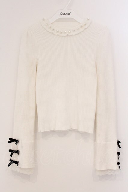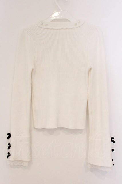 evelyn / 袖リボンリブニット シロ O-26-04-04-088-LO-TO-OW-OS