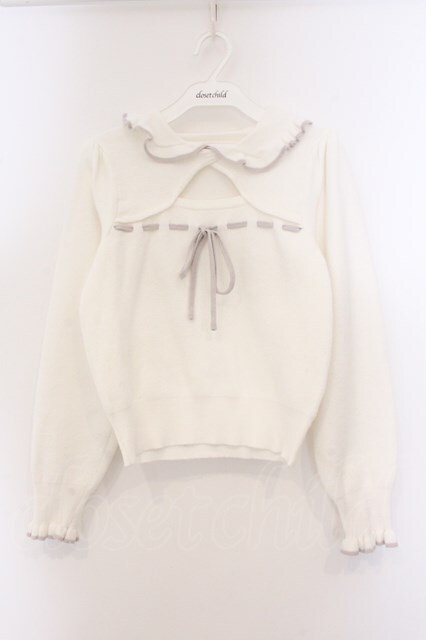 evelyn / バイカラー襟リボンニット シロ O-26-04-04-092-LO-TO-OW-OS