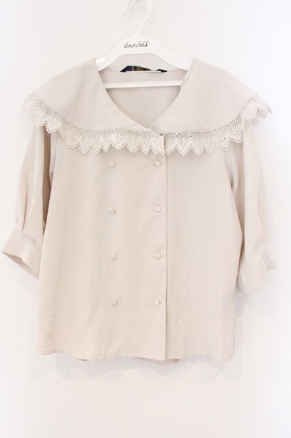 an another angelus / ダブル釦レース使いビッグカラーブラウス オフシロ O-26-04-04-004-CA-BL-IG-OS