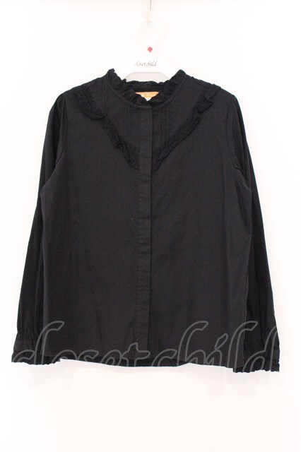 F i.n.t / ピンタックヨークコットンレース使いブラウス クロ O-26-04-04-008-CA-BL-IG-OS