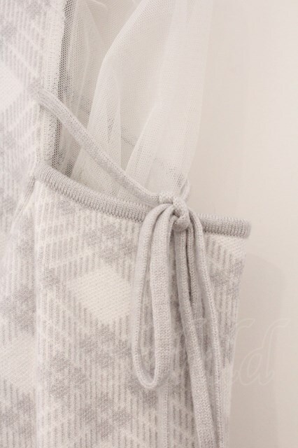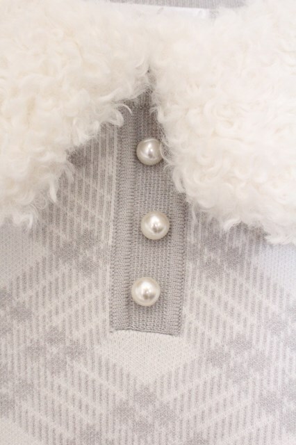 evelyn / ファー襟チェックニットワンピース F グレー O-26-04-04-085-LO-OP-OW-OS