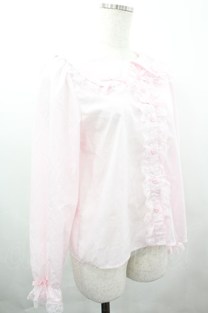 majoretty / 襟はしごリボンレースブラウス L ピンク I-26-04-03-003-GO-BL-SA-ZI