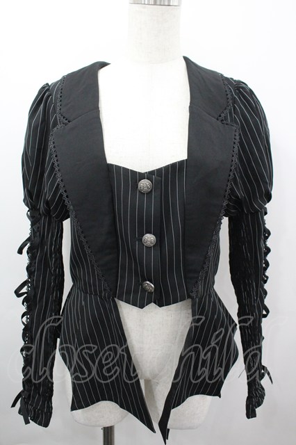 Chalmiere / ストライプレースアップジャケット M クロ I-26-04-03-029-0-JA-SA-ZI [2100060000053640-I-26-04-03-029-0-JA-SA-ZI]