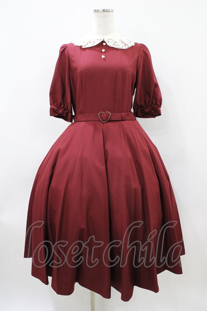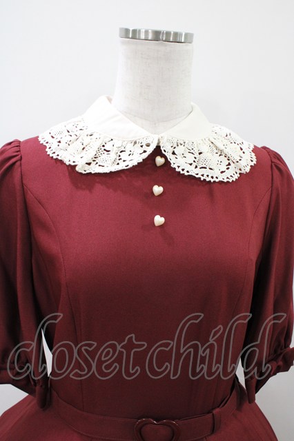 Innocent World / ハートのサーキュラーフレアーワンピース(五分袖) L ボルドー H-26-04-10-1023-IW-OP-NS-ZH