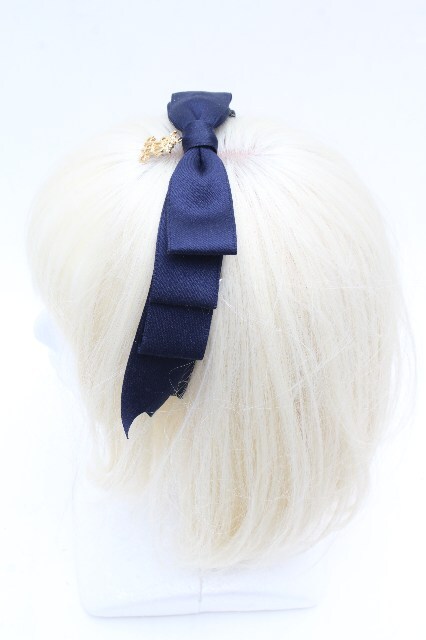 ALICE and the PIRATES / サテンリボンのまんなかリボンカチューシャ 紺 S-26-04-04-031-PA-AC-AS-ZS