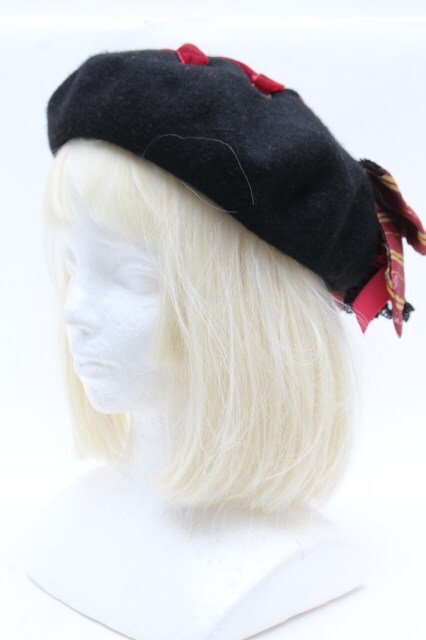 ATELIER PIERROT / ハリー・ポッター リボンブローチ付きレースアップベレー帽 黒x赤 S-26-04-04-045-EL-AC-HR-ZS